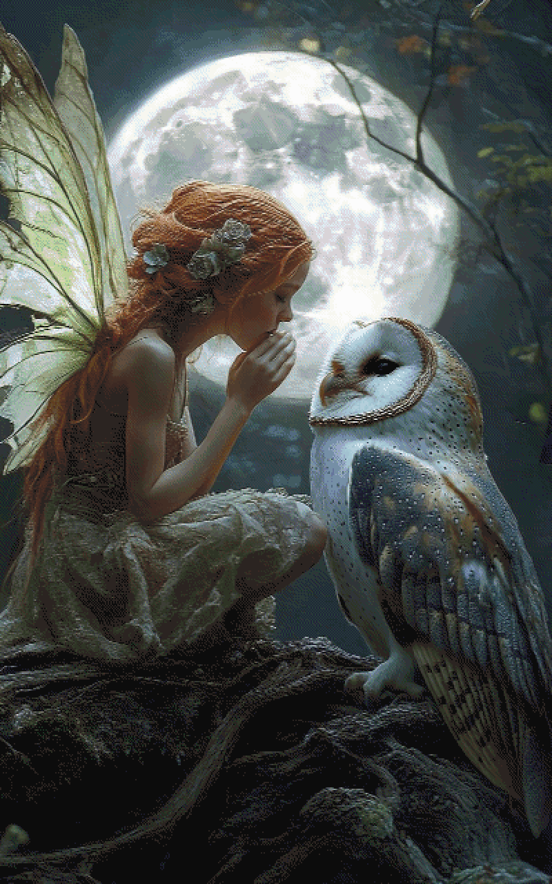 Patron de punto de cruz: Chica Mariposa en Rosa