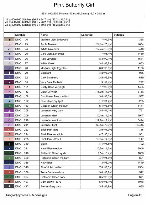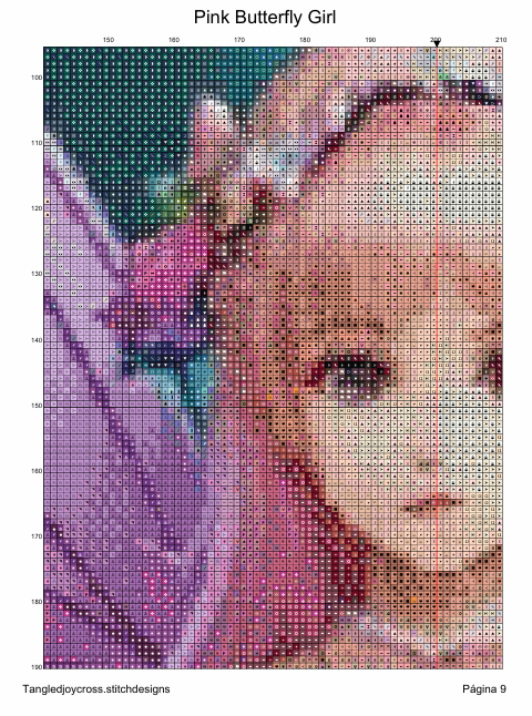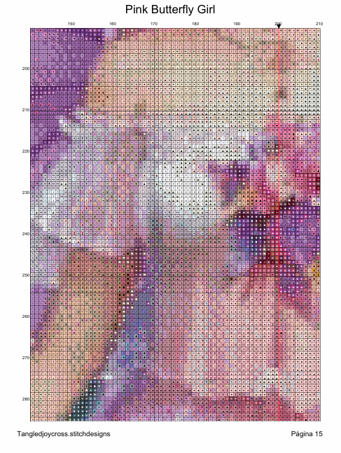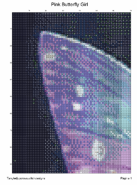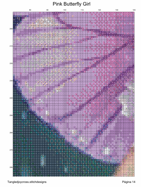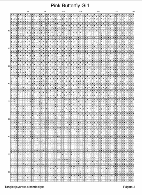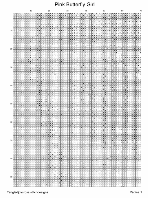 Patron de punto de cruz: Chica Mariposa en Rosa