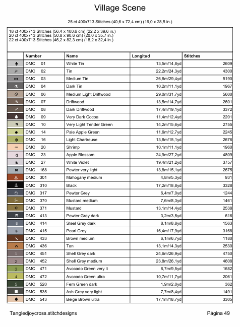 El estimado de hilo se ha calculado usando como referencia tela de cuenta de 25 usando una hebra de hilo (mi preferencia personal).