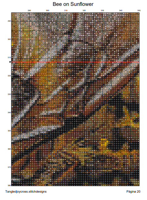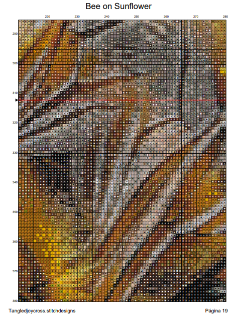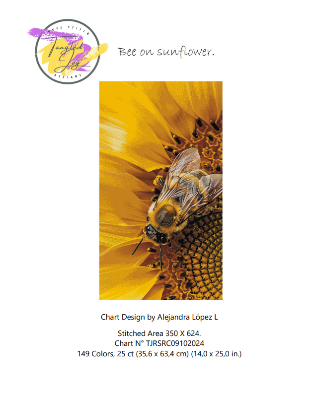 Patrón digital de Punto de cruz: Abeja sobre Girasol