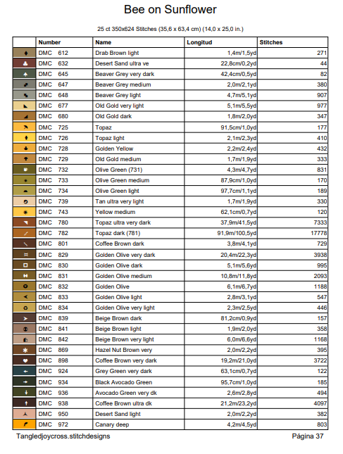 El estimado de hilo se ha calculado usando como referencia tela de cuenta de 25 usando una hecbra de hilo (mi preferencia personal).