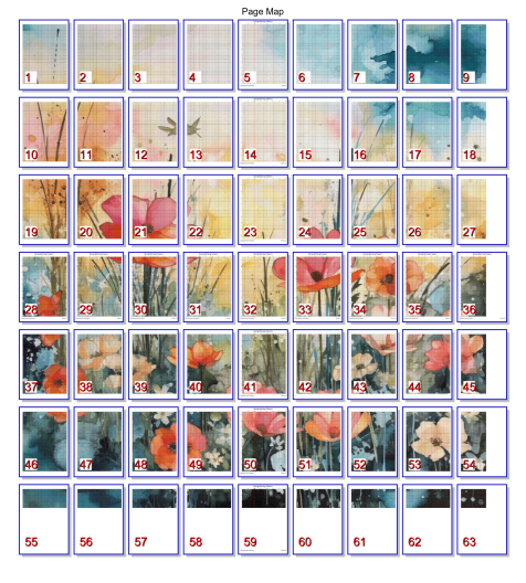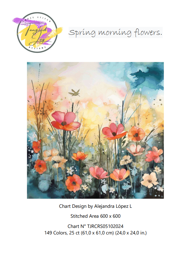 Patrón digital de Punto de cruz: Campo de Flores, efecto acuarela