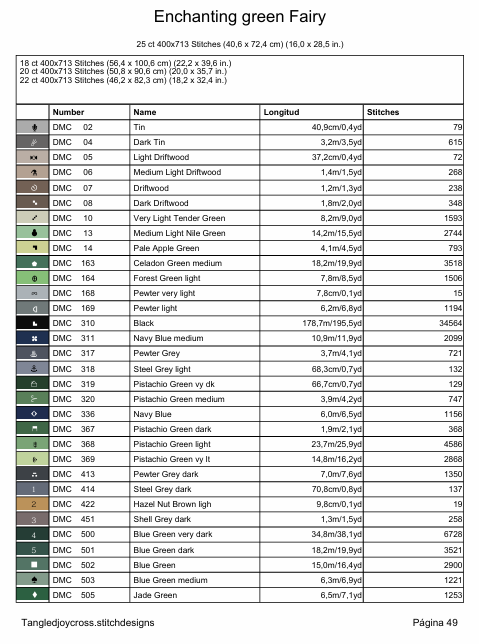 El estimado de hilo se ha calculado usando como referencia tela de cuenta de 25 usando una hebra de hilo (mi preferencia personal).