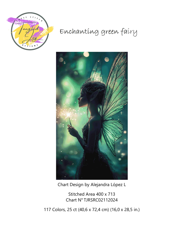 Patron digital de Punto de cruz: Encantadora Hada Verde