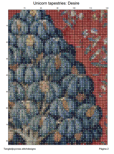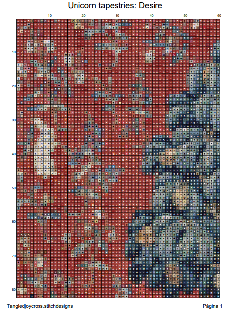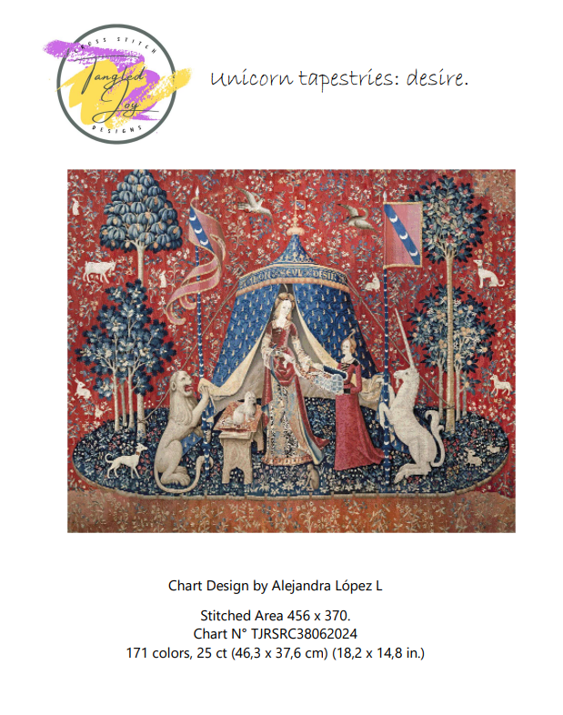 Patron digital de Punto de cruz; La dama y el Unicornio - Deseo