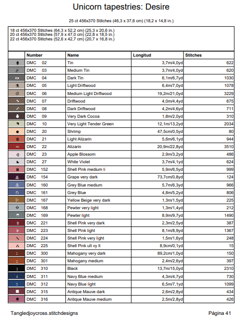El estimado de hilo se ha calculado usando como referencia tela de cuenta de 25 usando una hecbra de hilo (mi preferencia personal).