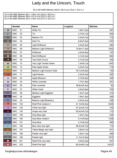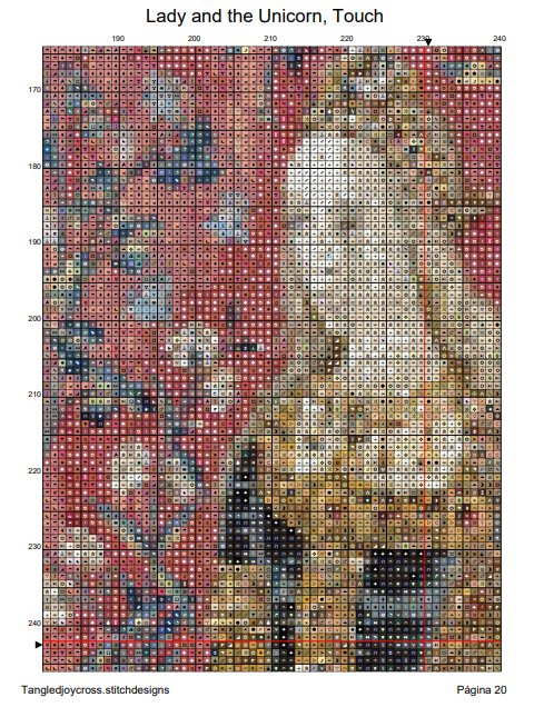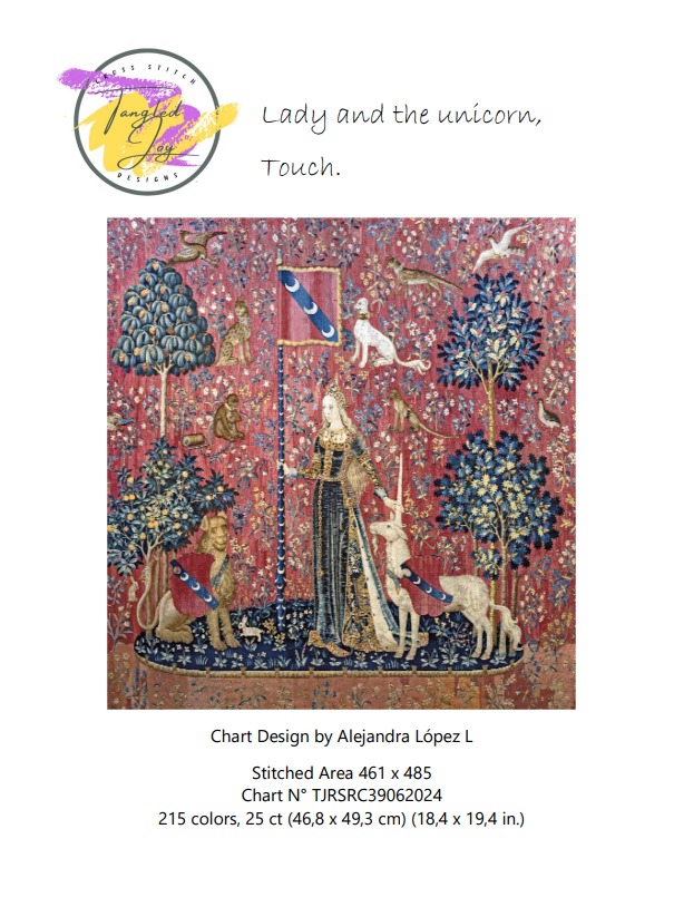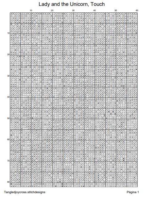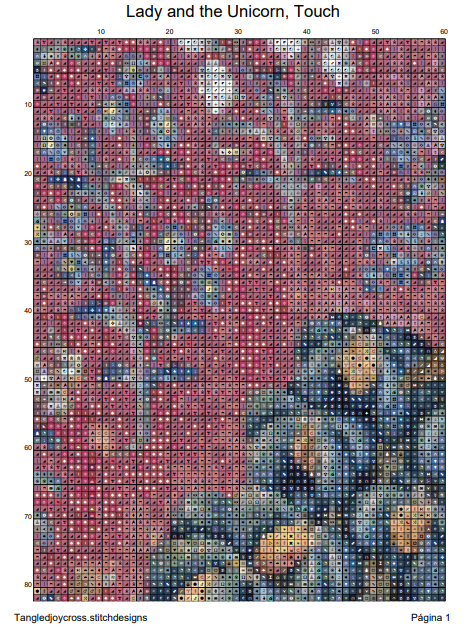Patrón digital de Punto de cruz: La dama y el Unicornio - Tacto