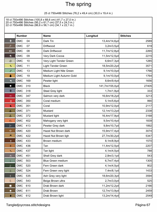 El estimado de hilo se ha calculado usando como referencia tela de cuenta de 25 usando una hebra de hilo (mi preferencia personal).