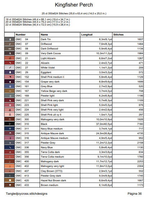 El estimado de hilo se ha calculado usando como referencia tela de cuenta de 25 usando una hecbra de hilo (mi preferencia personal).