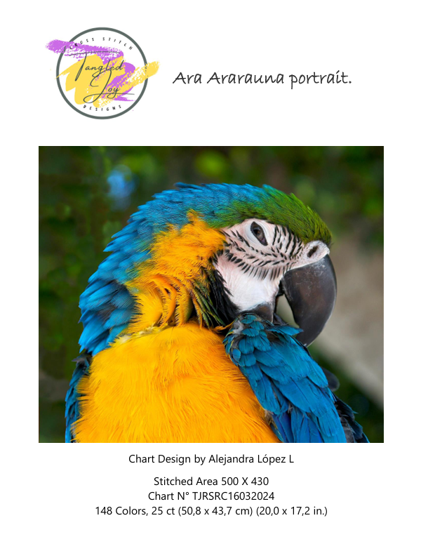 Patrón digital de Punto de Cruz: Retrato de un Loro
