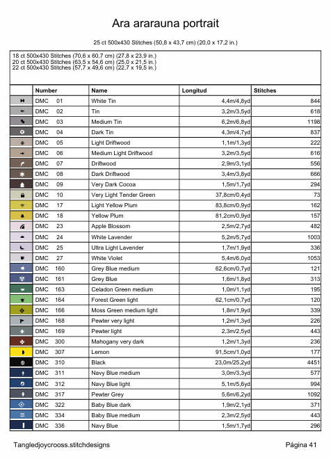 El estimado de hilo se ha calculado usando como referencia tela de cuenta de 25 usando una hebra de hilo (mi preferencia personal).