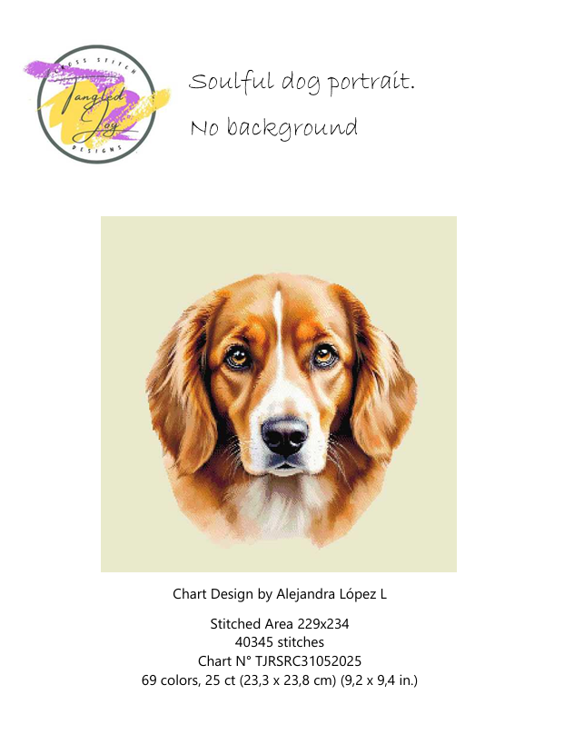 Patrón digital de Punto de cruz: Retrato de un perro, sin fondo bordado.