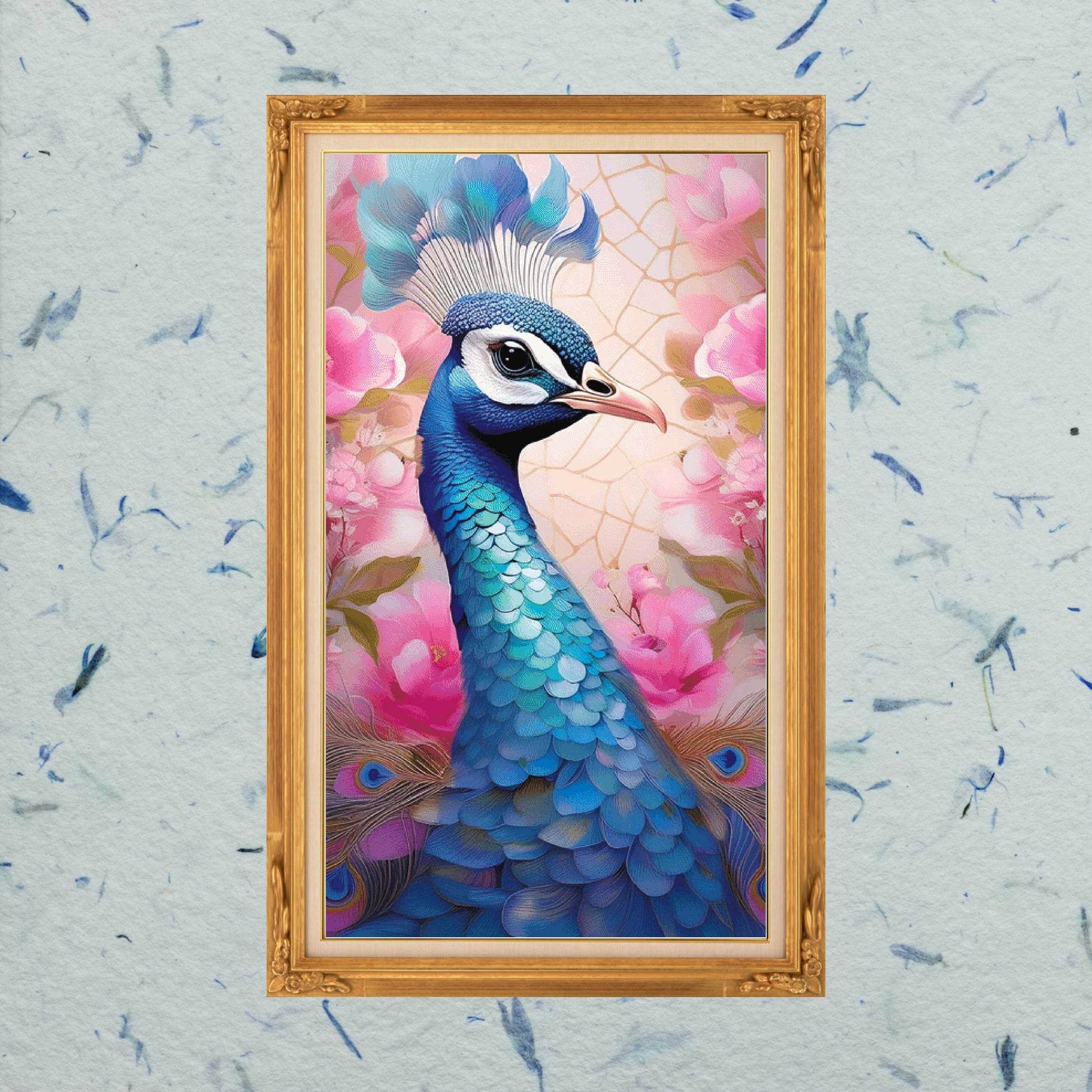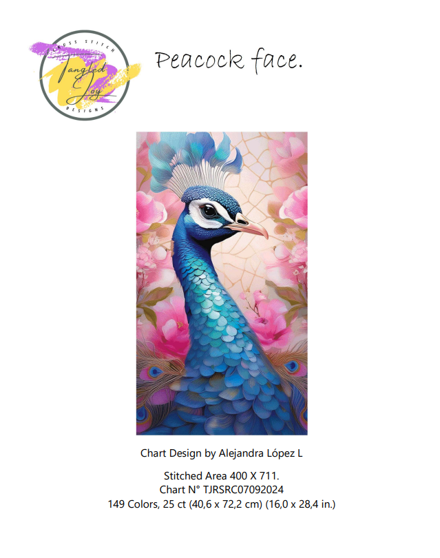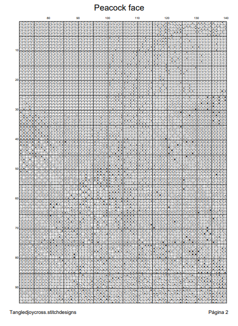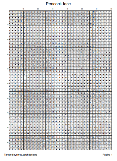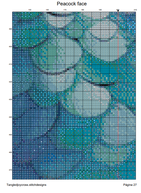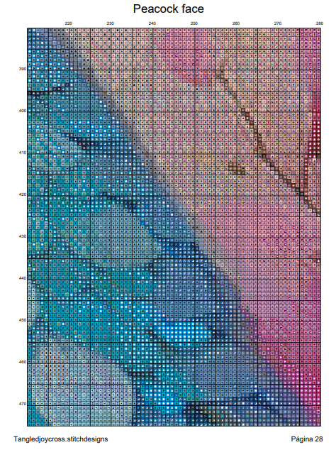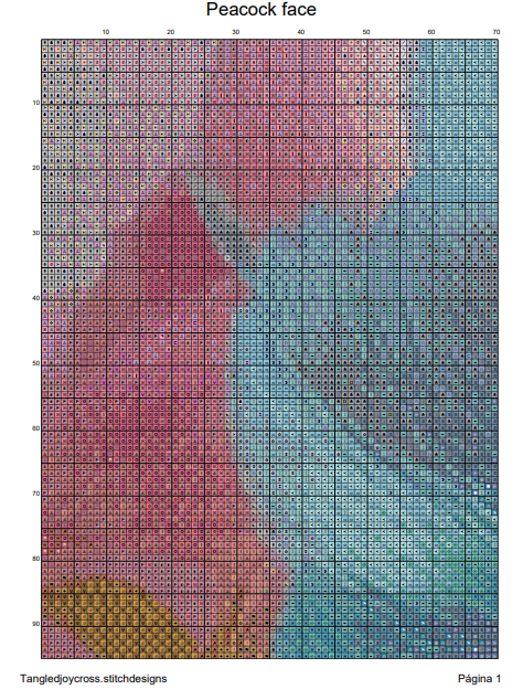 Patrón digital de Punto de cruz: Rostro de Pavo Real