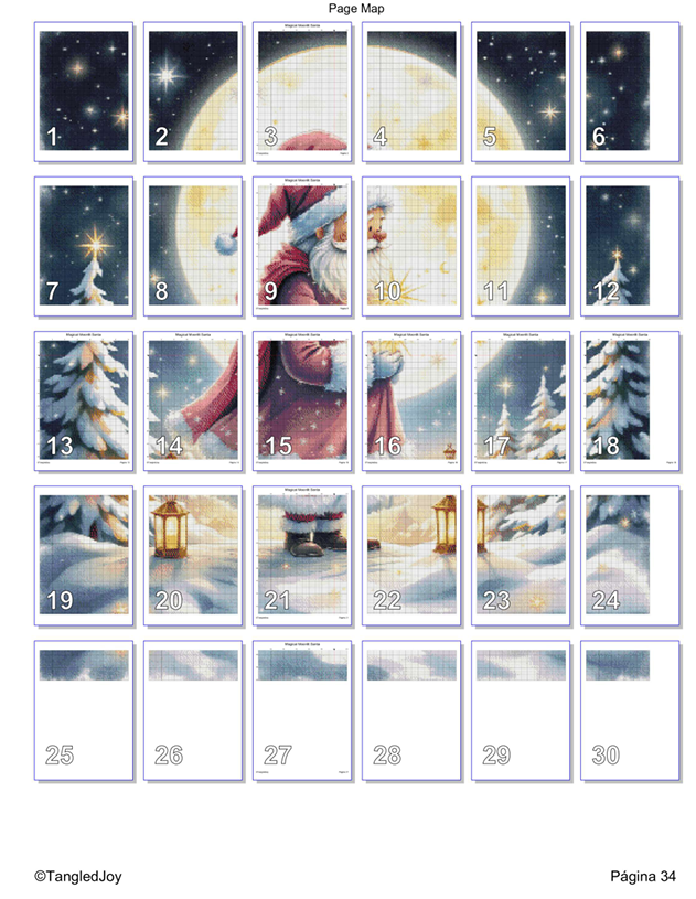 Patrón digital de Punto de cruz: Santa a la luz de la luna